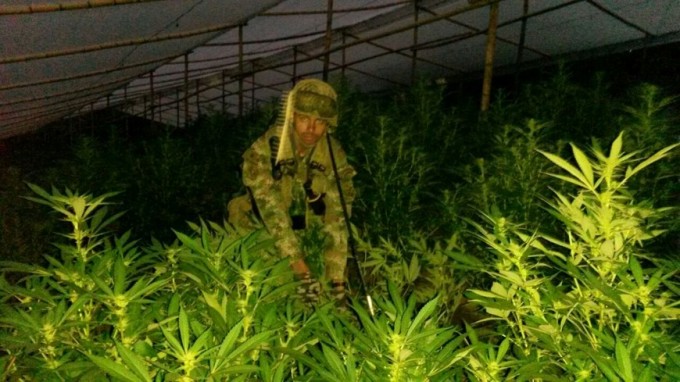 Seis invernaderos, en los que guerrilleros del frente sexto de las Farc cultivaban 17 mil matas de marihuana fueron destruidos en las veredas La Fonda y El Asomadero del municipio del Cauca. Entre las plantaciones, las tropas también incautaron elementos técnicos e insumos para el procesamiento del alcaloide.