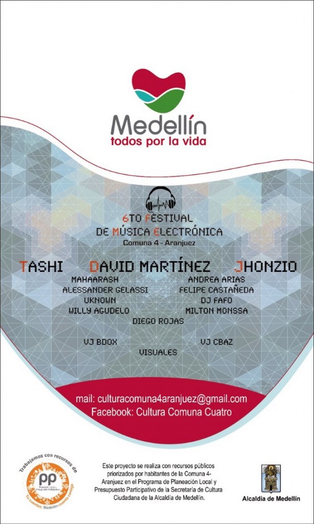 Minuto30.com.-Este sábado 30 de noviembre se realizará la sexta versión del Festival de Música Electrónica, un evento que se realiza con recursos del Programa de Planeación Local y Presupuesto Participativo de la Secretaría de Cultura Ciudadana de la Alcaldía de Medellín.