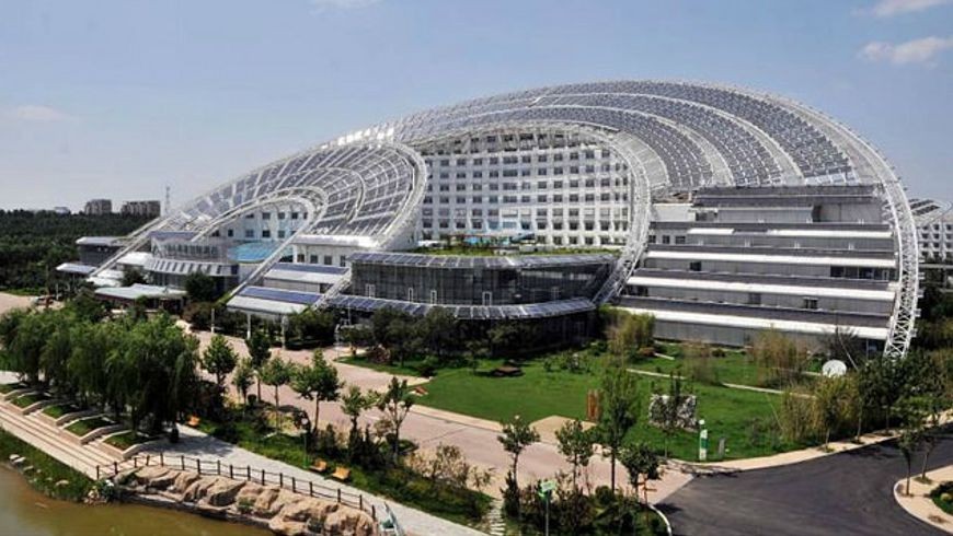 El edificio se encuentra en Dezhou, en la provincia de Shangdong, al noreste de China, y tiene una superficie superior a los 75 mil metros cuadrados. La construcción inteligente fue diseñada para asemejarse a la morfología de un antiguo reloj de sol.