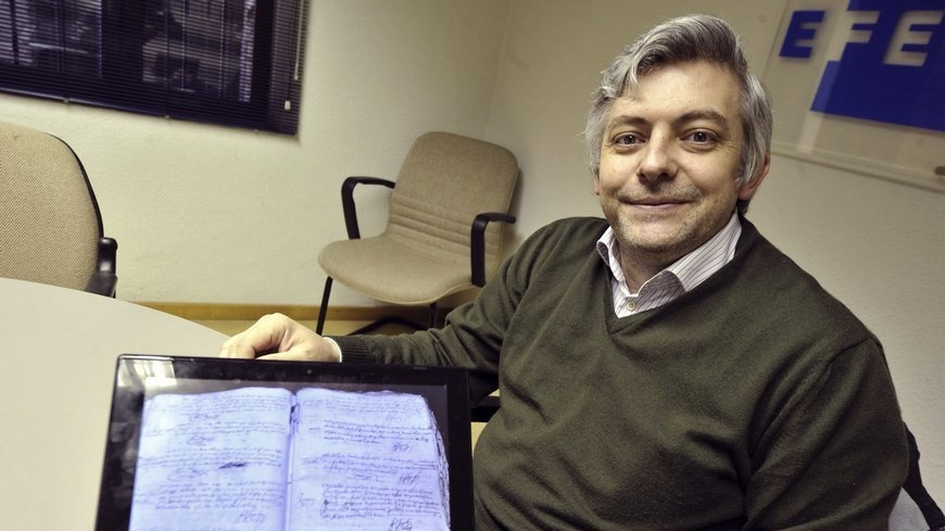 El investigador Javier Escudero tras desvelar a Efe en marzo de 2015 los documentos que ha encontrado en el Archivo Histórico Provincial de Toledo y que sitúan a un Alonso Quijano real en El Toboso (Toledo, España), y coetáneo de Miguel de Cervantes. EFE/Archivo