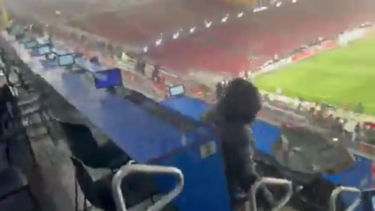 La zona de prensa fue uno de los sectores más perjudicados por el incidente, según se pudo observar en diversos videos que se volvieron virales en redes sociales.