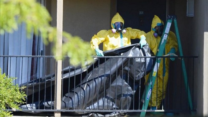 Funcionarios descontaminan el apartamento del enfermo de ébola Thomas Eric Duncan en Dallas, Texas (EE.UU.). EFE/Archivo