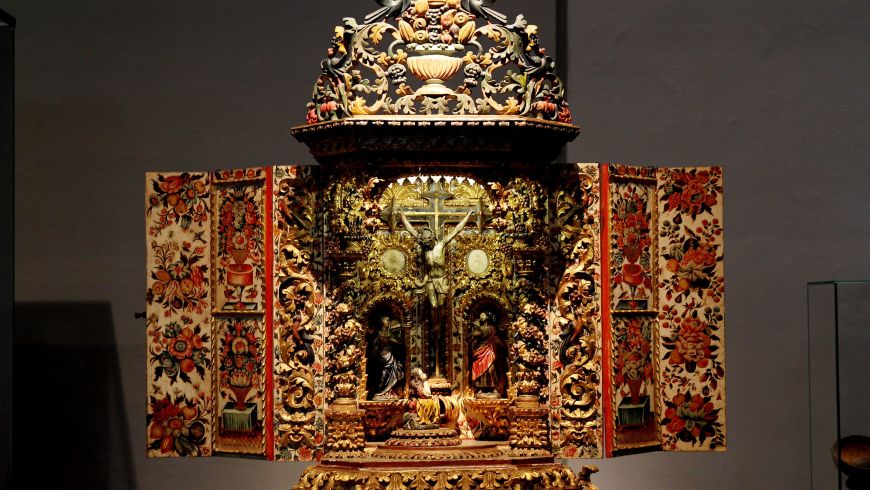 Esa mezcolanza puede observarse en un retablo católico de la época colonial con elementos artísticos propios del Barroco europeo y que intercala plantas de borrachero, vegetal usado por los pueblos prehispánicos en sus rituales sagrados.A su lado el visitante puede ver el primer tratado de la gramática muisca, elaborado por el clérigo hispánico Bernardo de Lugo, que fue fundamental en el proceso de evangelización y establecimiento de los dominios españoles.
