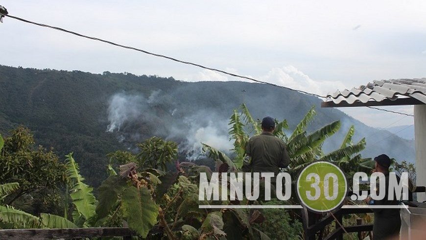 Durante la tarde el helicóptero Bambi Bucket de la Fuerza Aérea ha realizado 23 descargas de agua, equivalentes a 50.600 litros, en el Kilomtero 6 sector Cascadas de la vereda el Plan.