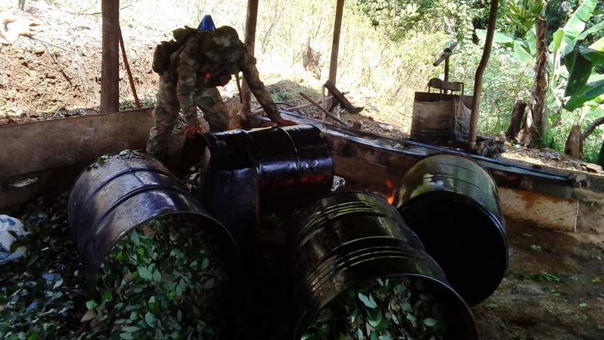Minuto30.com-. En operativos desarrollados en zona rural de Antioquia y Córdoba, tropas del ejército destruyeron 7 laboratorios para la elaboración de pasta de coca, que pertenecerían a las FARC y al Clan Usuga.