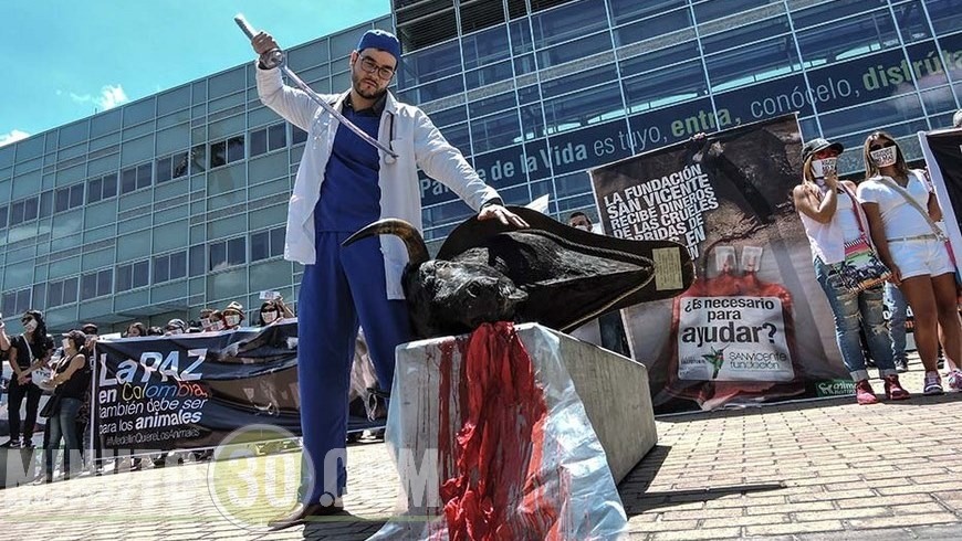 Los ciudadanos manifestaron su voz de protesta justo al frente del Hospital San Vicente de Paúl, debido a que según ellos, “la junta directiva de San Vicente Fundación tiene la decisión en sus manos de decirle sí a la vida, y no a la masacre de inocentes en nombre de la tradición”.