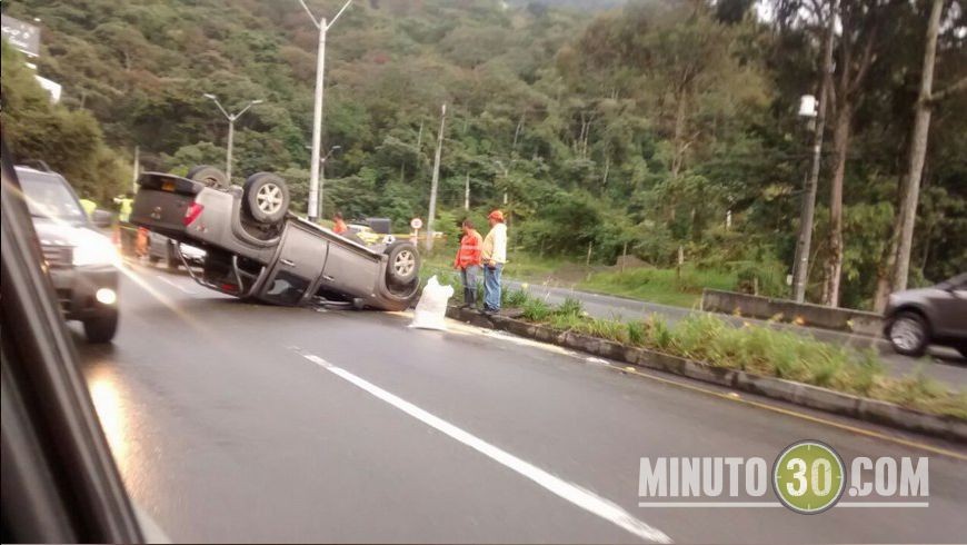 Según Reporte Ciudadano llegado hasta Minuto30.com, al parecer por el piso mojado, el conductor de una camioneta que venía con destino a Medellín perdió el control del vehículo y se volcó.