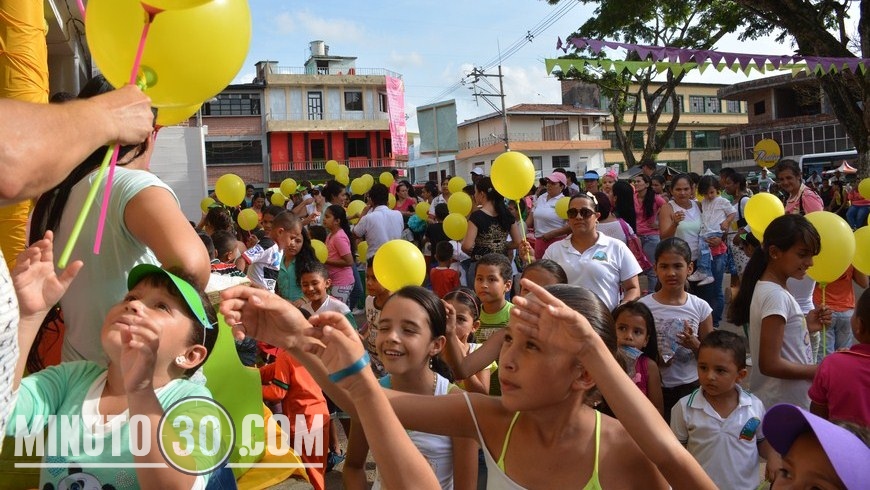 El festejo comenzó poco después de las tres de la tarde con un desfile de niños y padres de familia. La banda marcial y los niños disfrazados o vestidos festivamente portando carteleras sobre la niñez, partieron desde el Hogar infantil Colorines hasta el parque principal de Maceo.
