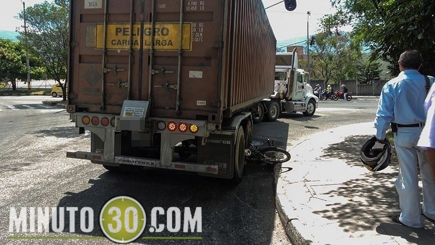 Minuto30.com-. Destruida quedó una moto que la mañana de este miércoles terminó debajo de las llantas de un tractocamión cuando su conductor esperaba un cambio semafórico en Robledo.
