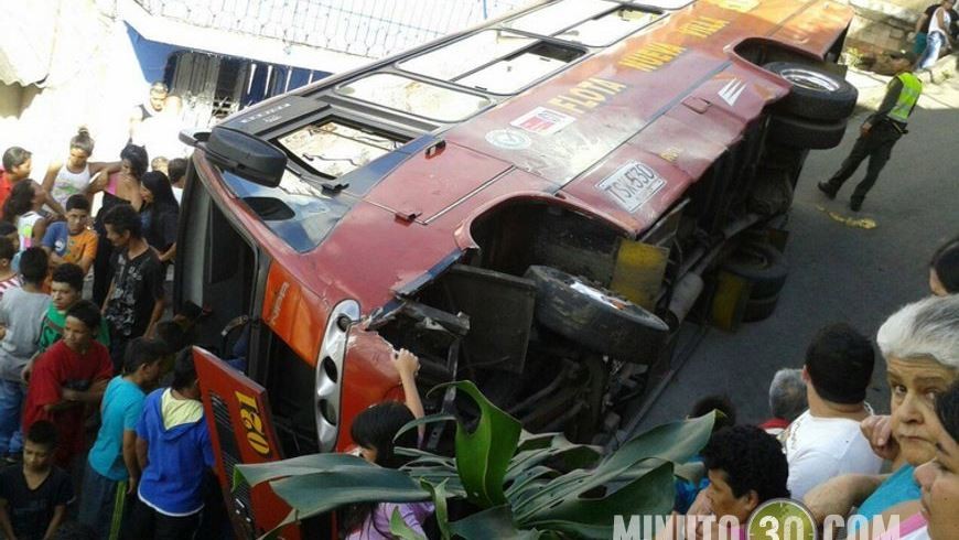 Era la 1:50 de la tarde cuando en la carrera 31 con calle 68A se volcó un bus y dejó 8 heridos leves. El conductor del vehículo atribuye el accidente a un daño en los frenos.