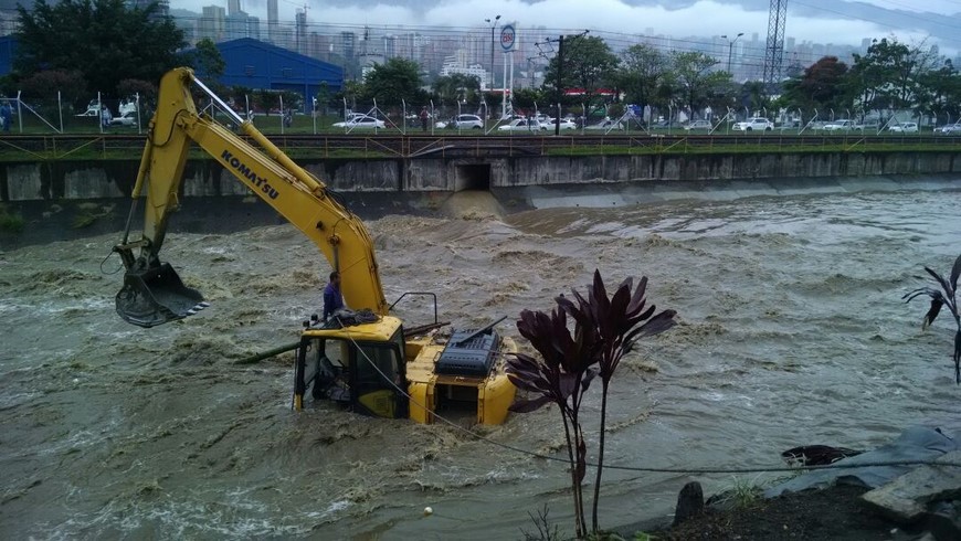 Jorge Jiménez Oviedo, operador de una de las retro que trabaja en las obras contratadas por Urgencia Manifiesta en el Río Medellín, logró salir ileso de una creciente súbita en el caudal del Río. El obrero fue evaluado por atención prehospitalaria.