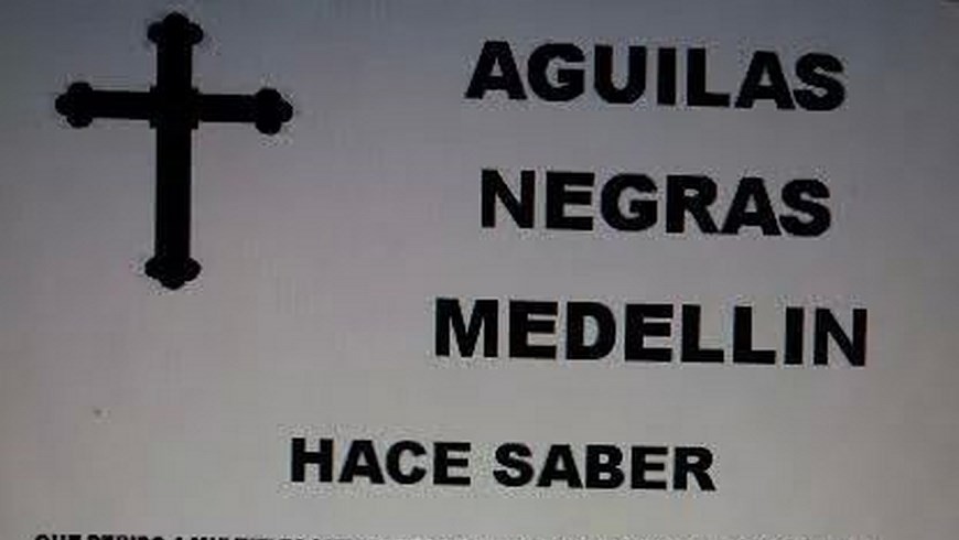 El panfleto se lo atribuyen las denominadas ‘Águilas Negras Medellín’. En el aseguran que debido a las constantes quejas de la ciudadanía declaran “objetivo militar y en lista de limpieza social a prepagos, gays, marihuaneros, proxenetas, atracadores y fleteros“.