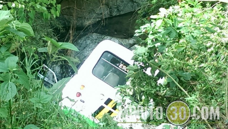 Minuto30.com-. Ileso resultó el conductor de un bus escolar que la madrugada de este lunes rodó por un barranco y terminó en una quebrada de la Comuna 13.