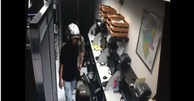 El hombre que viste camiseta negra y jeans, sin quitarse el casco de la cabeza, a la fuerza intenta someter a una de las empleadas, posteriormente, una de las mujeres logra llamar a la línea de atención de la policía, al terminar la llamada pierde el conocimiento.