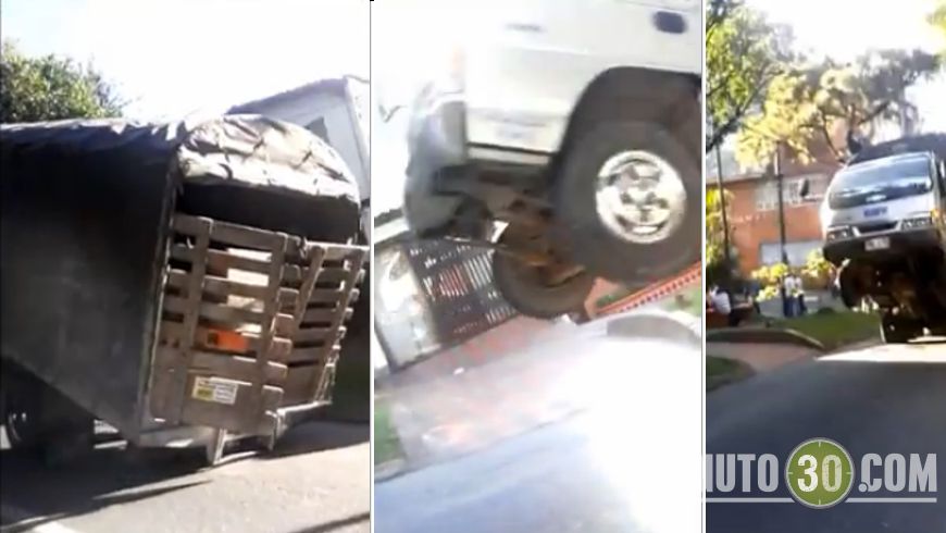 Minuto30.com .- Un curiosos hecho se registró la tarde de este martes en el barrio Alcalá de Envigado, cuando un camión, al parecer por el peso quedó suspendido en el aire.