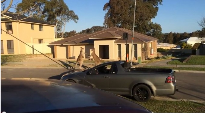 En un barrio tranquilo en un suburbio al sur de Sidney, en Australia, dos canguros se pelean en plena vía pública. El hecho fue registrado por un vecino que los filmó sin salir de su asombro.