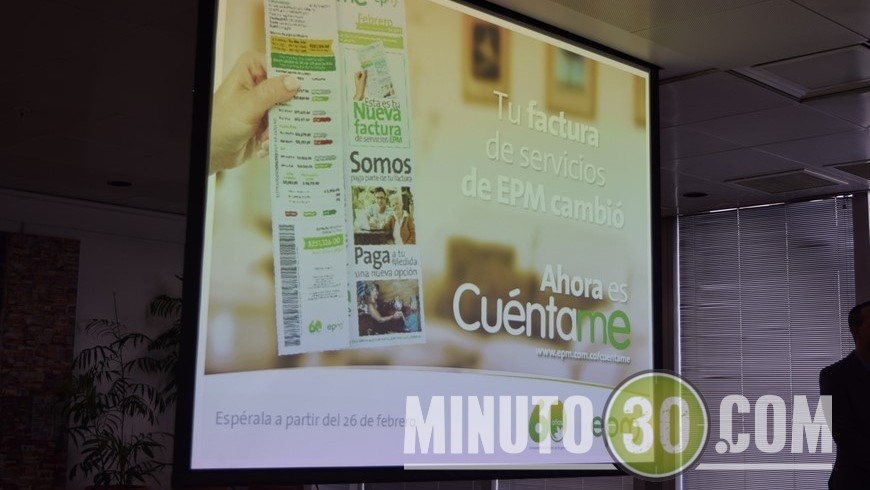 Minuto30.com.- EPM presentó su nueva factura de servicios públicos. Se trata de un novedoso recibo denominado “Cuéntame”, que además de tener las tarifas a pagar por cada uno de los servicios contratados, incluirá información corporativa de la estatal y hasta crucigramas relacionados con los productos de EPM.