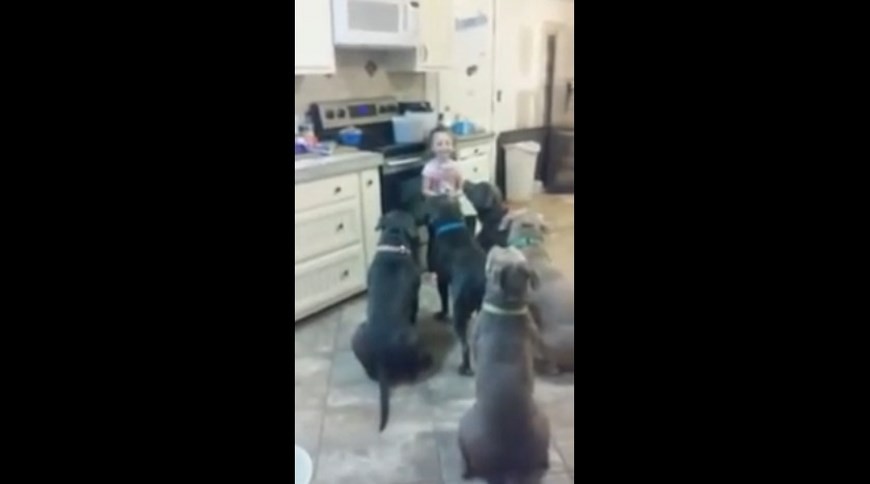 Minuto30.com-. En las redes sociales se ha vuelto viral un video que protagoniza una niña de cuatro años, en el que se ve cómo domina a seis perros pitbull hambrientos.