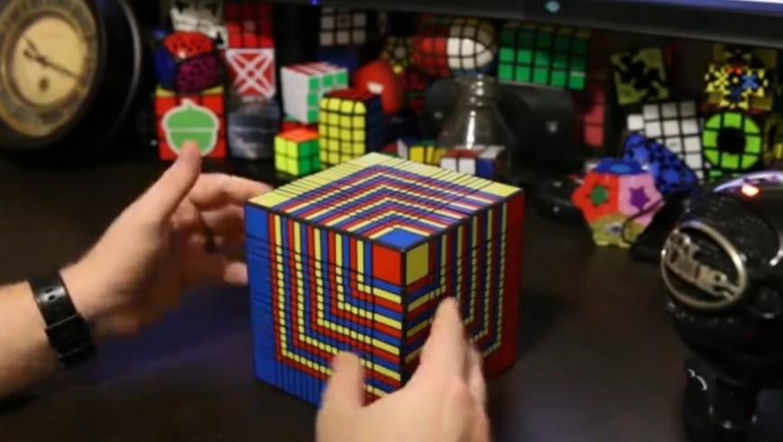 Se trata de la versión 17x17x17 del popular juego del cubo de los 80.