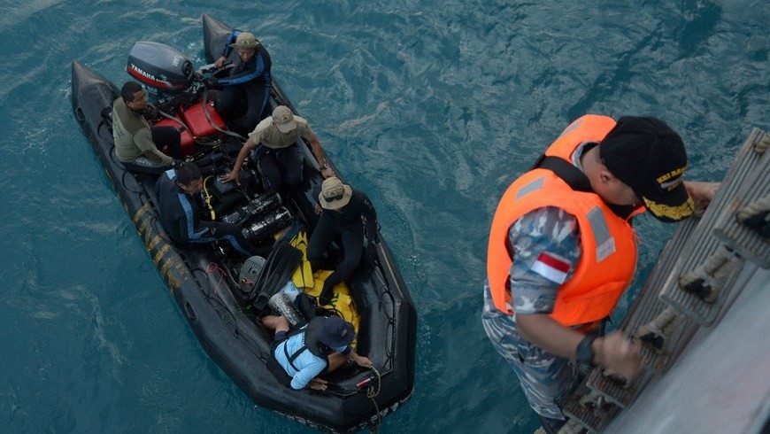 El militar, que se encontraba a bordo del buque KRI Banda Aceh, detalló que la señal proviene de “un punto situado a unos 300 metros” de donde encontraron una sección de la cola del Airbus 320-200 siniestrado.