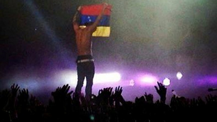 En el comunicado se indica que el artista “en un error humano e involuntario” recibió una bandera de Venezuela de parte del público y “sin ninguna mala intención la elevó sin percatarse que estaba invertida”, una situación “que no duró más que un segundo”.
