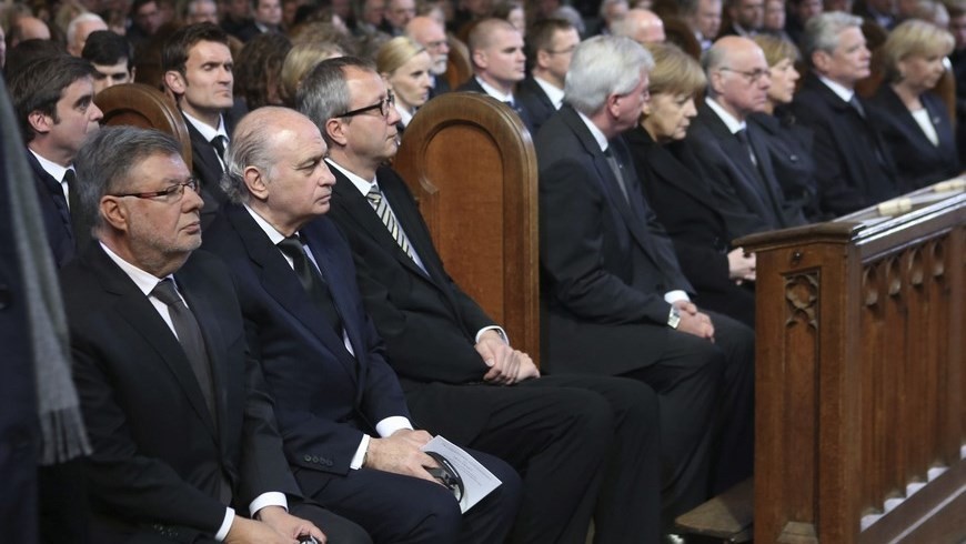 El ministro trasladó la solidaridad y el cariño de los reyes de España y del Gobierno español a los alrededor de quinientos familiares de las víctimas asistentes a este acto ecuménico y también a las autoridades presentes en la catedral, encabezadas por el presidente alemán, Joachim Gauk, y por la canciller, Angela Merkel.