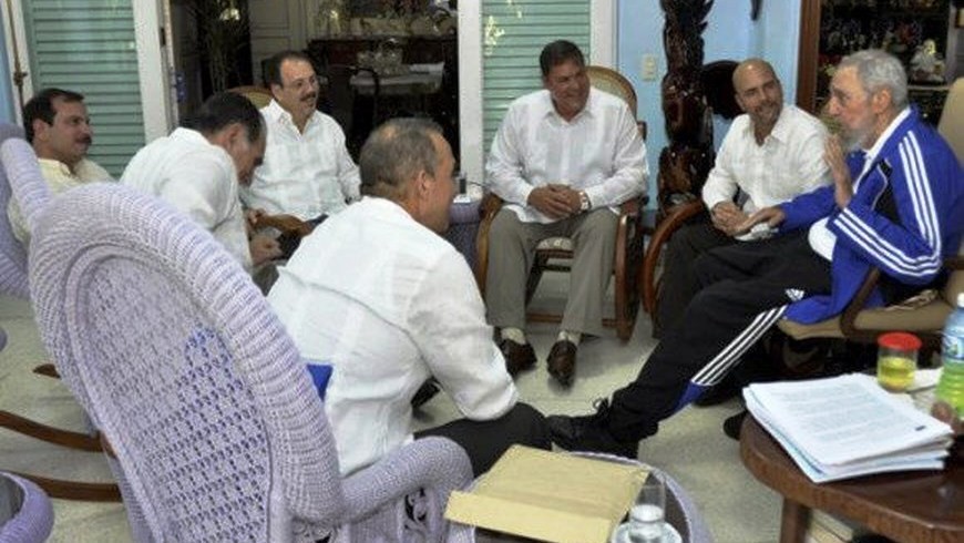 El artículo de Fidel Castro -de 88 años y retirado del poder desde 2006 por una enfermedad- se acompaña de fotos de la reunión donde se le ve sentado, posando y charlando con los agentes.