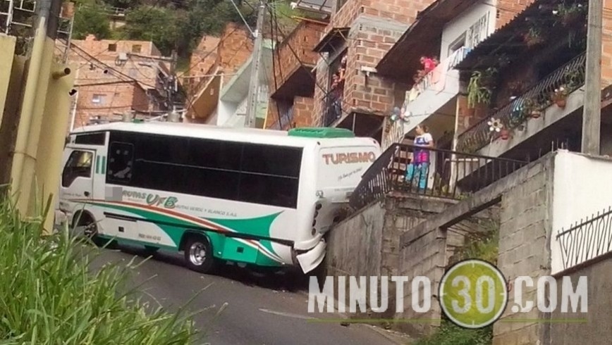 Minuto30.com-. Solo daños materiales y un gran susto entre los residentes del sector y los ocupantes del vehículo dejó el choque de un bus contra una vivienda en el nororiente de Medellín.