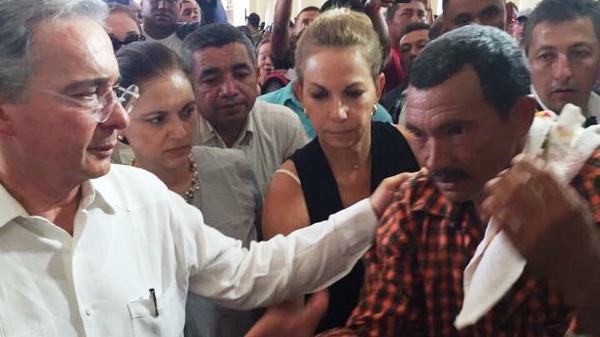 El expresidente Álvaro Uribe atendió el llamado del padre de unos de los soldados masacrados vilmente por las Farc en el Cauca, canceló su viaje a Brasil y de inmediato se presentó en el lugar de velación del soldado bolivarense.