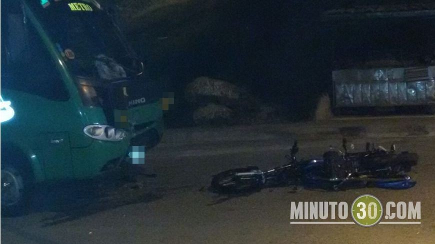 Minuto30.com .- Un grave accidente se registró la noche de este miércoles, en la vía que conduce a San Antonio de Prado. Motociclista y parrillero perdieron la vida al estrellarse contra un bus del Metro.