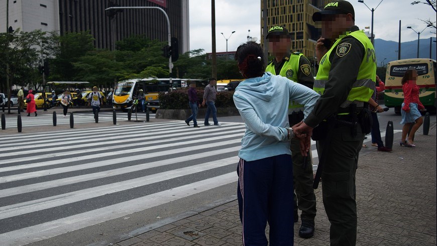 Durante el registro a 1.239 personas en la calle 44 con carrera 53 y sus alrededores, agentes de la policía inmovilizaron 6 motos, incautaron 90 armas blancas, 40 gramos de marihuana, 9 bases de coca y 15 de bazuco.