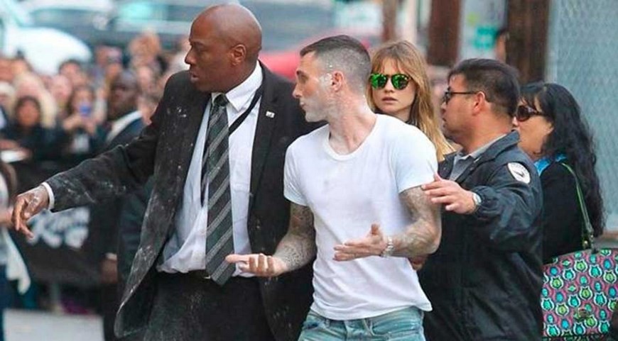 El cantante Adam Levine, de Maroon 5, fue embadurnado con azúcar en polvo por un individuo de 28 años que le asaltó a la salida de un programa de televisión en Los Ángeles.