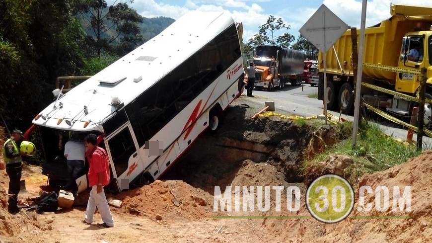 El accidente del bus ocurrió sobre la variante de Caldas, en el sentido norte – sur, a cinco minutos de ese municipio. Al parecer, el vehículo, que cubre la ruta hacia el municipio de Támesis, se quedó sin frenos y cayó sobre el tramo que está haciendo ampliado en una curva peligrosa de esa vía del Aburrá sur.
