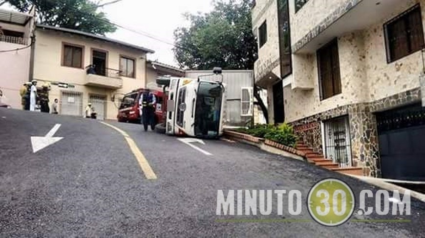El hecho se registró poco antes de este mediodía de jueves cuando el camión tuvo que tomar una vía del barrio Pérez, por donde están desviando a algunos vehículos, ya que varias vías están en reparación.