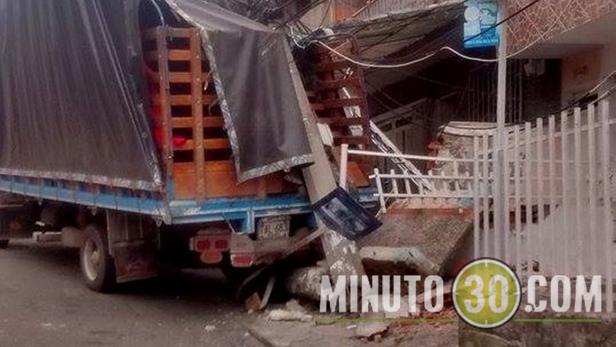 El accidente ocurrió poco antes de este mediodía en el barrio Pedregal. Según testigos, un camión se rodó en reversa por una de las calles de esa zona y terminó estrellado contra la fachada de dos viviendas, pero antes, en su recorrido, se llevó varias señales tránsito y hasta quebró uno de los postes que sostiene el cableado de energía.
