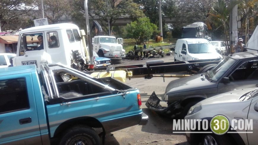 Minuto30.com .- A las 10 de la mañana de este jueves se presentó un choque en la calle 46 con carrera 63B, barrio Naranal; Un planchón que trataba de voltear en una esquina tumbó el guardabarros de un carro que obstaculizaba el paso.
