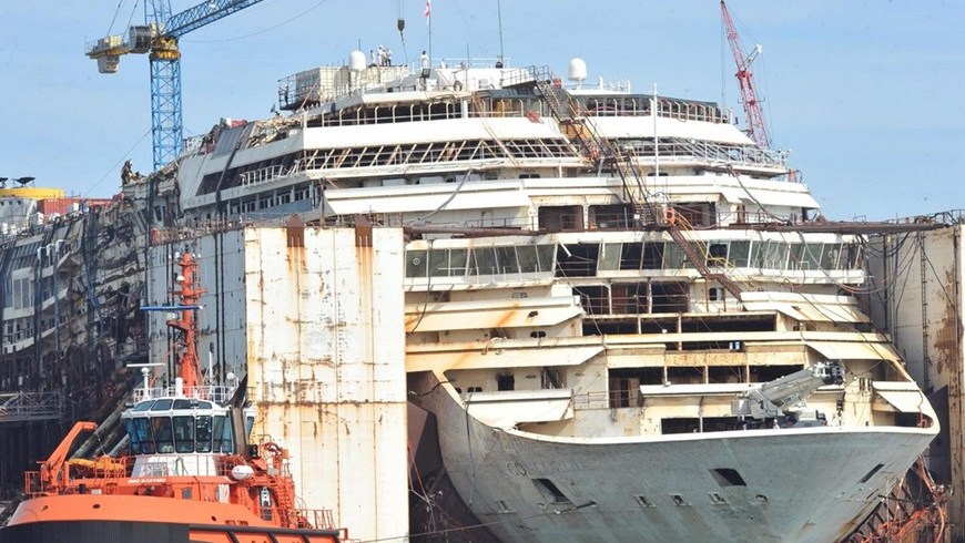Los restos de la nave permanecieron durante dos años varados ante la isla e Italia tuvo que poner en marcha un faraónico sistema de enderezamiento, reflotado y traslado, una labor en el curso de la cual perdió la vida un submarinista español, en febrero de 2014.