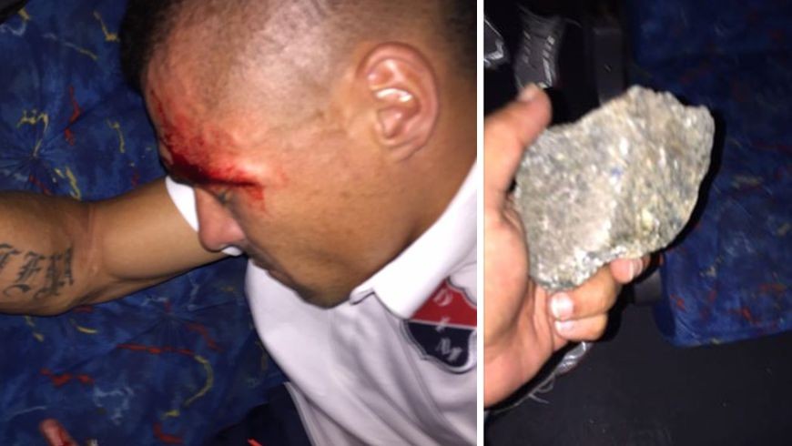 Cuando se trasladaba el equipo antioqueño en su bus de regreso al hotel, tras ganar el partido en el Estadio Manuel Murillo Toro, el vehículo fue atacado a piedras. impactando una de ellas en la sien del delantero antioqueño.