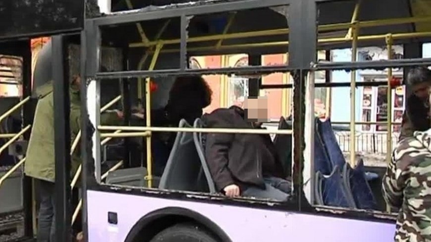 Debido al impacto del obús, el trolebús ardió en llamas, al igual que algunos coches aparcados en las inmediaciones, mientras un edificio colindante de cinco plantas sufrió importantes desperfectos.