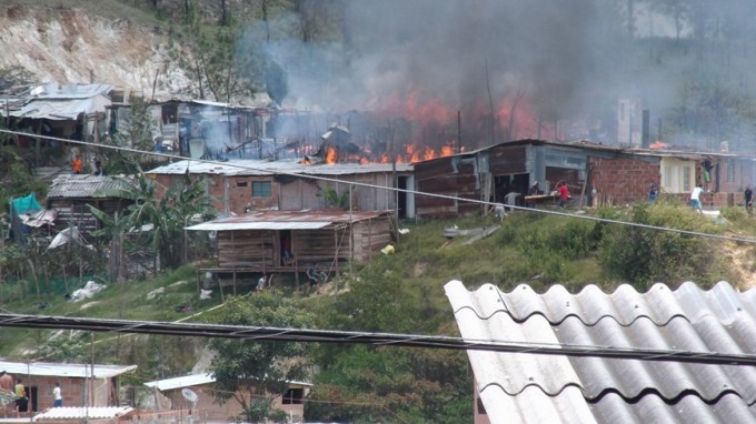 El incendio, que inició a las 11:30 de esta mañana, consumió catorce viviendas ubicadas en la carrera 73 con calle 25, al noroccidente del Valle Aburrá, cerca al barrio París.