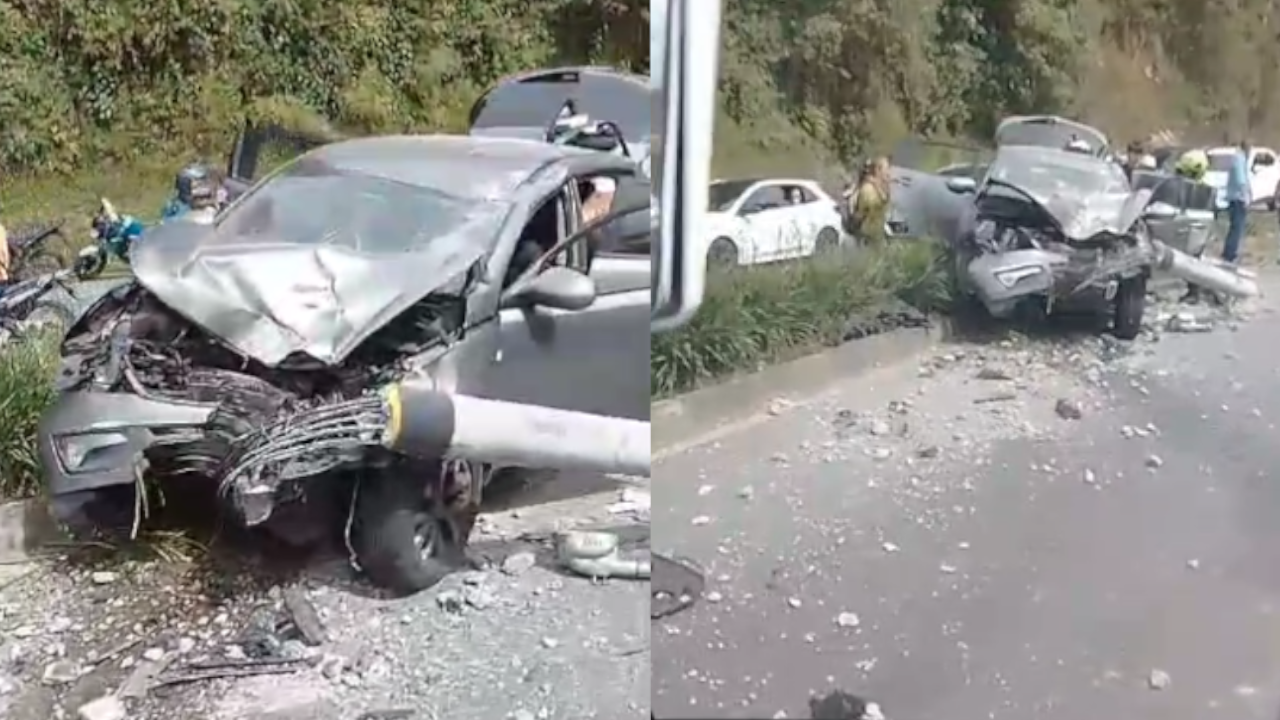 Las imágenes del incidente muestran la parte delantera del vehículo completamente destruida y el poste de energía derribado.