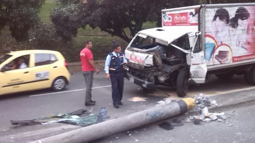 Ocurrió a las 4:35 de esta tarde en la carrera 80 con la calle 32 D, en Belén. Un furgón que se desplazaba en el sentido sur – norte de la carrera 80 chocó contra un poste que terminó sobre la vía.