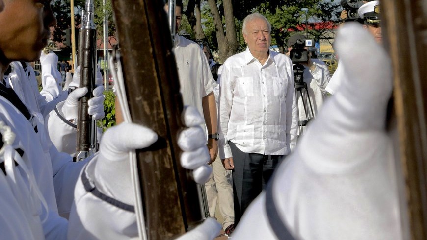 García-Margallo, que efectúa su primera visita oficial a Colombia, estuvo acompañado por el alcalde de Cartagena, Dionisio Vélez, y por oficiales y cadetes de la Armada colombiana en el homenaje a Blas de Lezo, cuya estatua se levanta frente al Fuerte de San Felipe de Barajas.