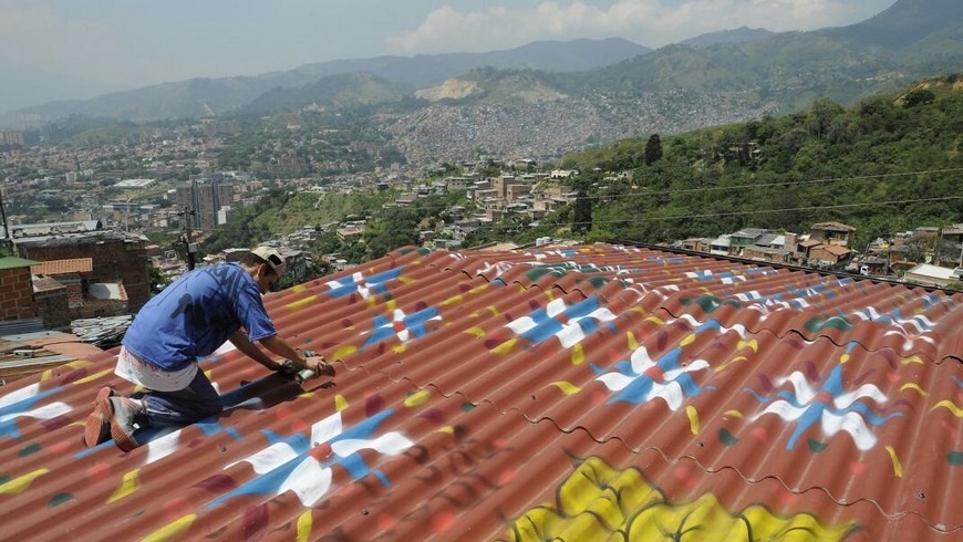 El proyecto tuvo un costo de $450 millones y cada techo fue intervenido por los artistas de colectivos grafiteros de la ciudad. 10 jóvenes de la Casa Kolacho con el apoyo de pinturas de la Fundación Orbis transforman los techos en una gran galería de arte urbano.