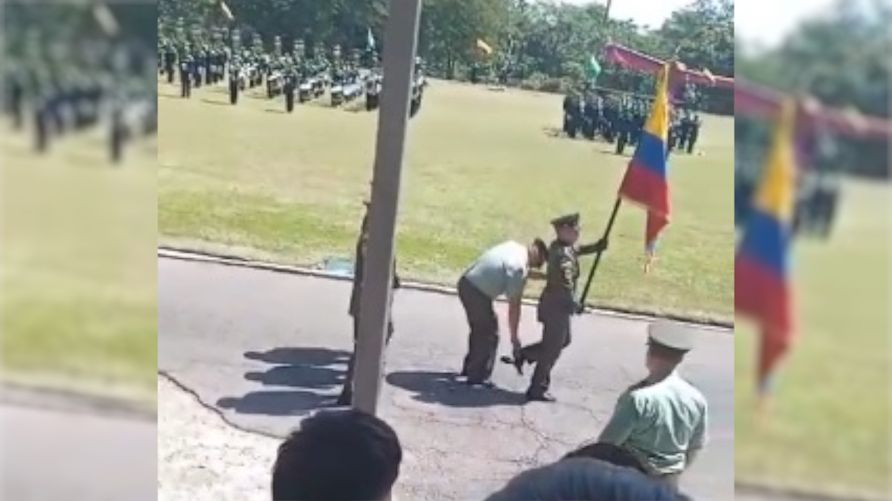 Elogios y palabras de reconocimiento ha recibido un uniformado de la Policía, que se quitó el zapato para cambiarlo con un compañero durante una marcha en un evento.