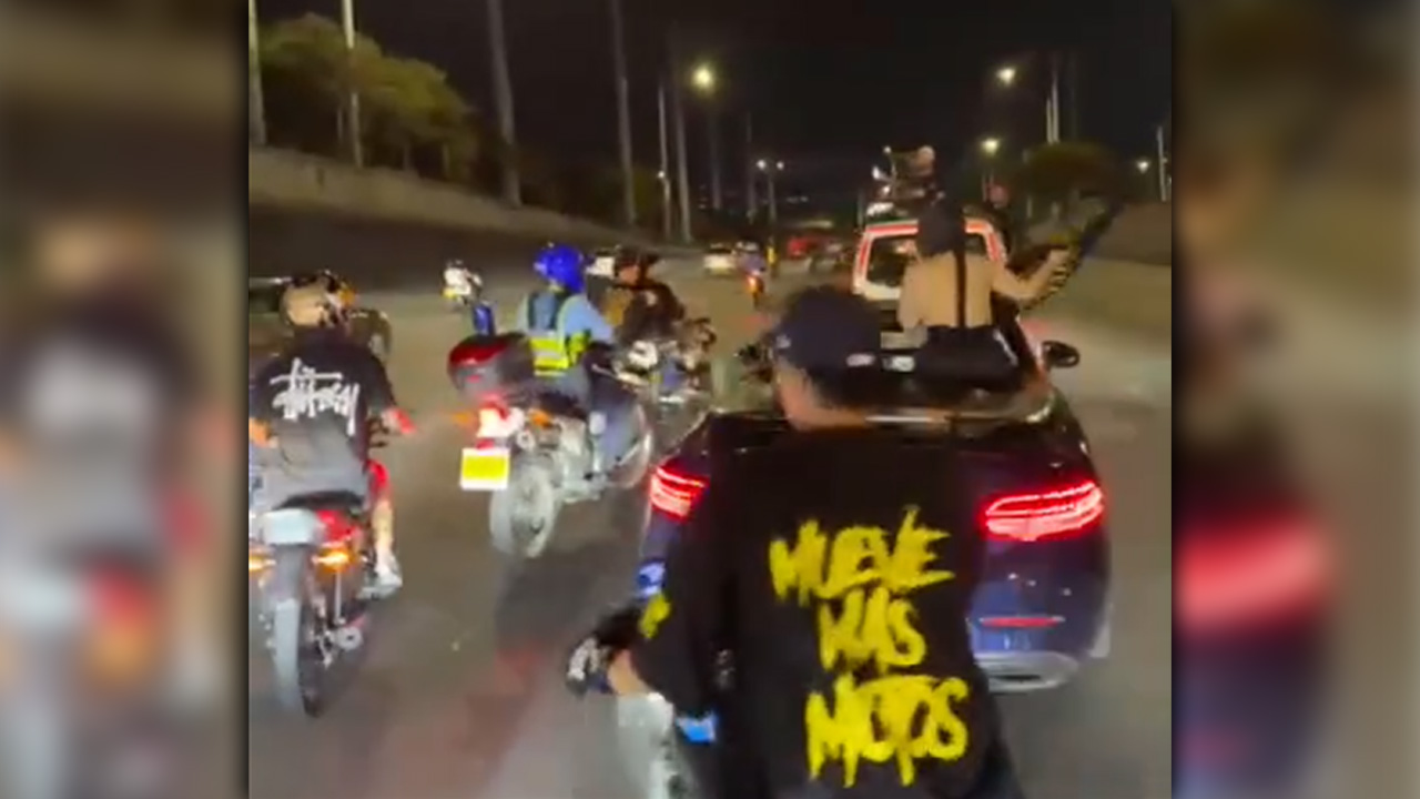 El guarda de tránsito llegó al lugar luego de que reportaran que había un bloqueo en el soterrado de Parques del Río, donde había una camioneta, un carro convertible y varias motocicletas.