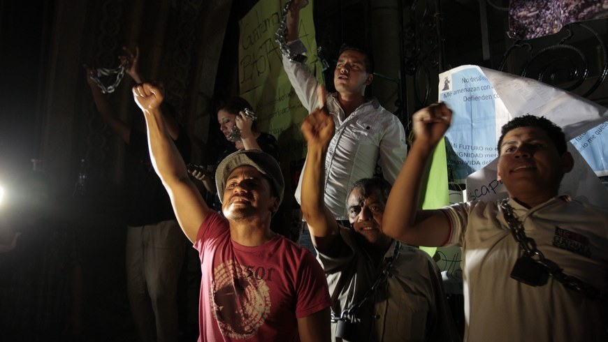 Precisamente en esa edificación cumplió este viernes una semana encadenado un grupo de personas en exigencia de la renuncia de Baldetti, el cual celebró junto con la multitud.