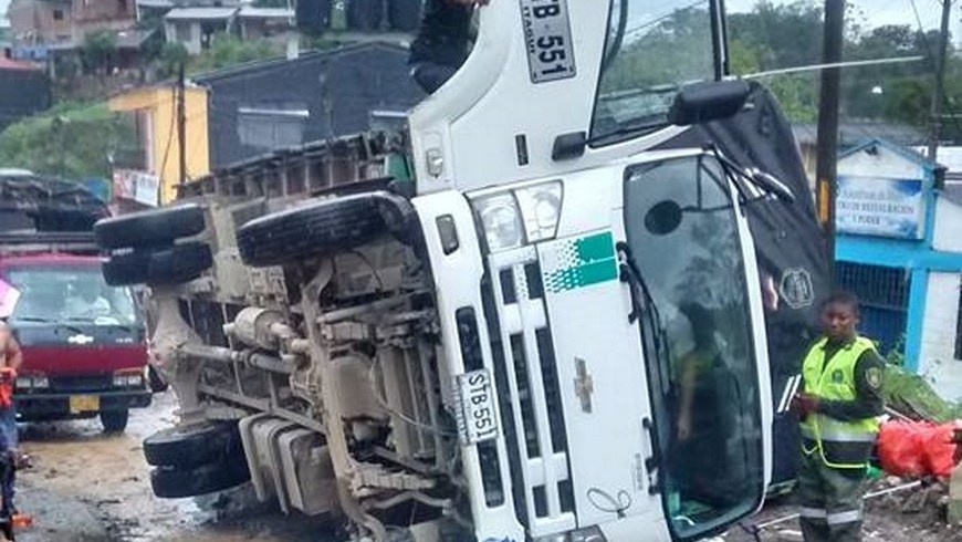 Minuto30.com-. Al mal estado de la carretera atribuyeron los haitantes de Quibdó el volcamiento de un camión en la vía El Caraño. Con estas imágenes los ciudadanos quisieron llamarle la atención a la alcaldesa de la capital chocoana.