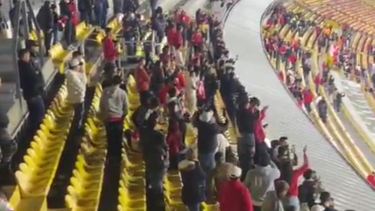 Un grupo de hinchas de Independiente Santa Fe, se quedaron en El Campín, hasta conocer el final del partido donde su archirrival, Millonarios, estaba quedando eliminado de la Liga BetPlay.
