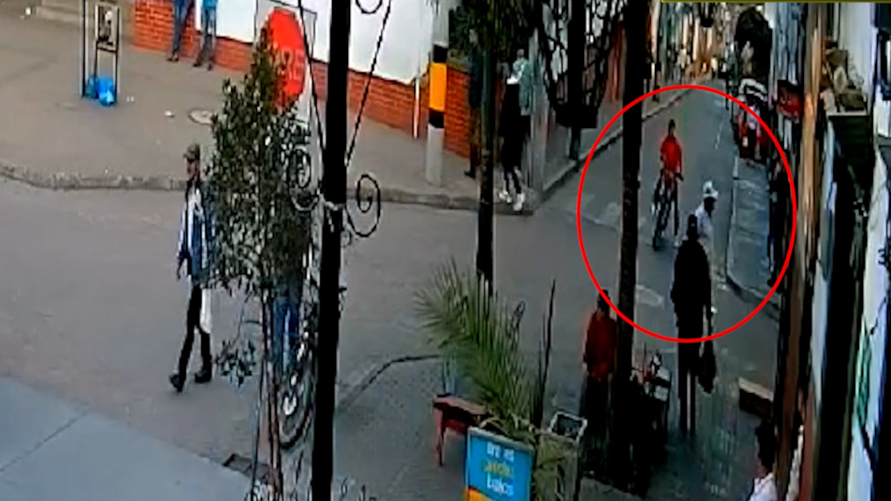 La cámara de seguridad evidenció cómo el sujeto conducía en contra vía por una de las vías principales del municipio, cuando perdió el control y se fue contra varias personas que estaban paradas en la acera de la esquina.